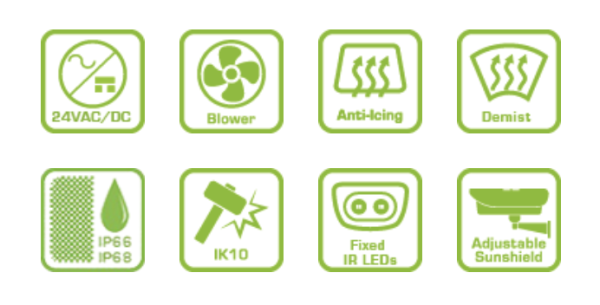 A1020 là mẫu camera giá cả phải chăng, hỗ trợ nguồn AC24V (tùy chọn DC24V) và được trang bị bộ sưởi và quạt để làm tan băng cho cửa sổ. Camera tương thích với hầu hết các camera hộp/cố định hiện nay, ngay cả với ống kính góc rộng hoặc ống kính tiêu cự thay đổi tầm xa. Vỏ camera được chế tạo từ nhôm đúc đạt tiêu chuẩn IP66/IK10 và tất cả các linh kiện đều được kiểm tra trong khoảng nhiệt độ từ -20℃ đến 65℃. Ngoài ra, A1020 được thiết kế với đèn chiếu sáng hồng ngoại tích hợp cho môi trường ban đêm.