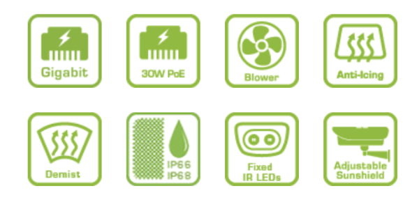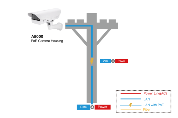 A5000 được cấp nguồn PoE với công suất đầu vào 30W và tất cả đều được trang bị máy sưởi và quạt gió để làm mát và khử băng cho cửa sổ. Chỉ cần cắm và chạy qua một cáp mạng duy nhất là có thể sử dụng camera.