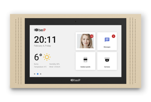 Màn hình chuông cửa BAS-IP AT-10 là thiết bị trong nhà cao cấp với màn hình cảm ứng IPS LCD 10 inch độ phân giải HD (1280×800), mang lại hình ảnh sắc nét, màu sắc sống động từ mọi góc nhìn. Sản phẩm được làm bằng nhôm cao cấp, hỗ trợ lắp đặt âm tường hoặc treo tường, kèm theo giá đỡ chuyên dụng, dễ dàng tích hợp vào không gian nội thất hiện đại.