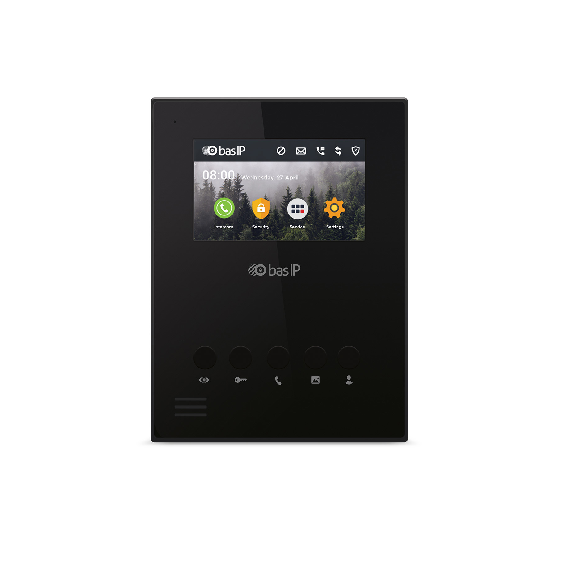 Hệ thống liên lạc nội bộ có thể được quản lý không chỉ bằng các nút bấm cơ học mà còn thông qua màn hình cảm ứng. Vỏ máy có màu đen trắng cổ điển, phù hợp với mọi phong cách nội thất.