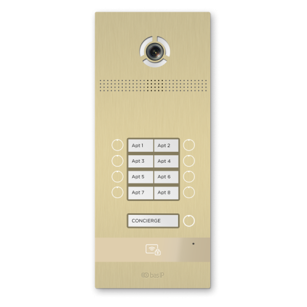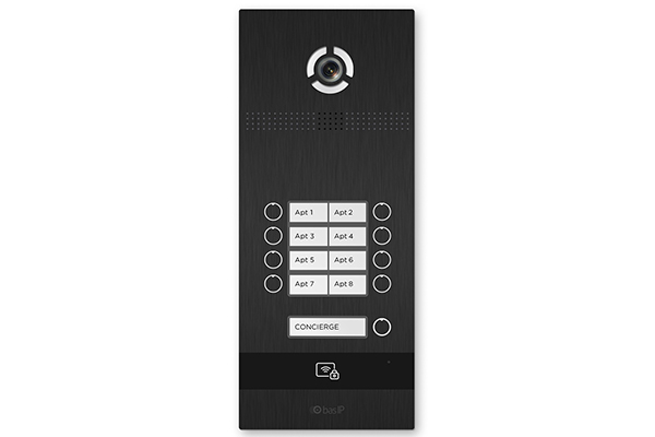 Bảng điều khiển cuộc gọi BI-08FB dành cho 8 người đăng ký. Hỗ trợ công nghệ ‘UKEY’: đọc thẻ, chìa khóa và mã định danh di động theo tiêu chuẩn EM-Marin, Mifare® Plus và Mifare® Classic, Bluetooth, NFC.
