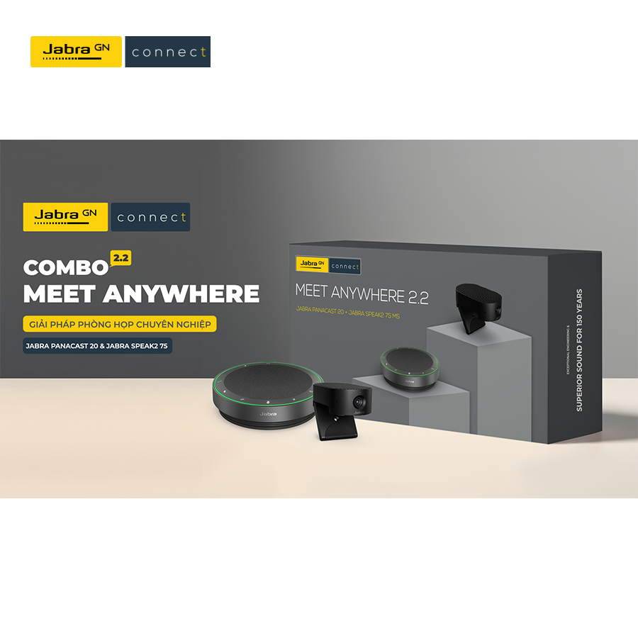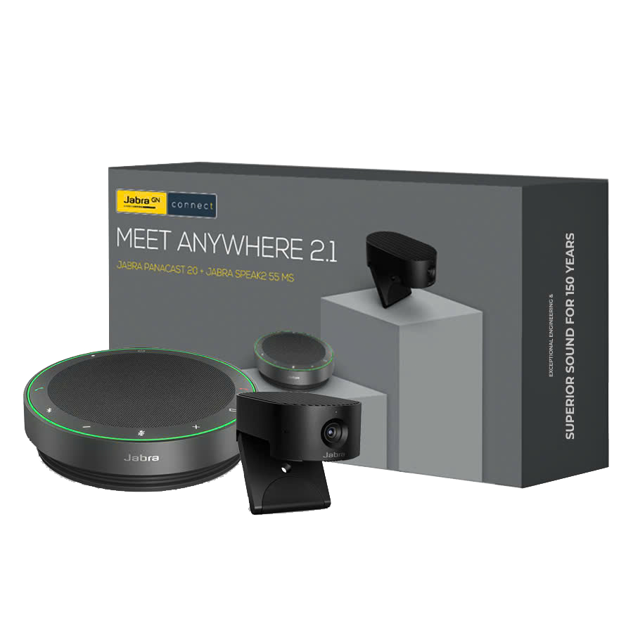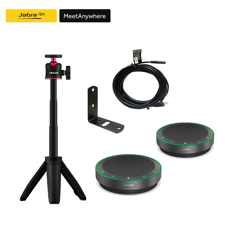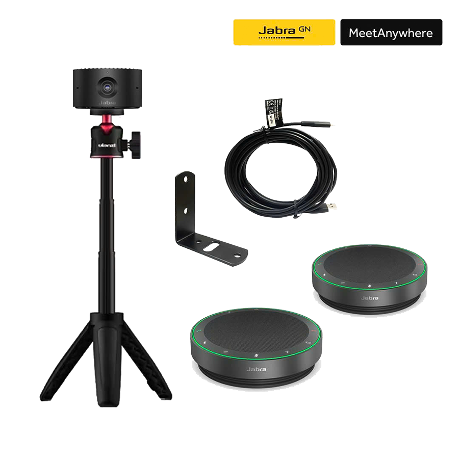 Jabra Meet Anywhere là bộ thiết bị hội nghị cao cấp được thiết kế để tối ưu cho các phòng họp nhỏ đến vừa, từ 4–10 người. Bộ giải pháp kết hợp giữa camera Jabra PanaCast 20 với khả năng hiển thị hình ảnh 4K Ultra-HD sắc nét, cùng loa hội nghị Jabra Speak2 55 với âm thanh mạnh mẽ và micro đa hướng 360°. Tùy phiên bản, bộ thiết bị đi kèm phụ kiện gắn tường, hộp đựng di động hoặc thêm loa để phục vụ tốt hơn cho nhu cầu thực tế.
