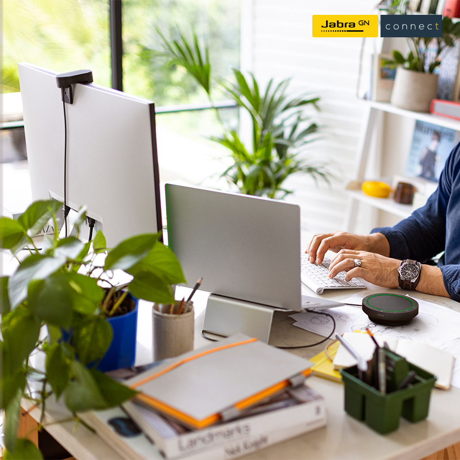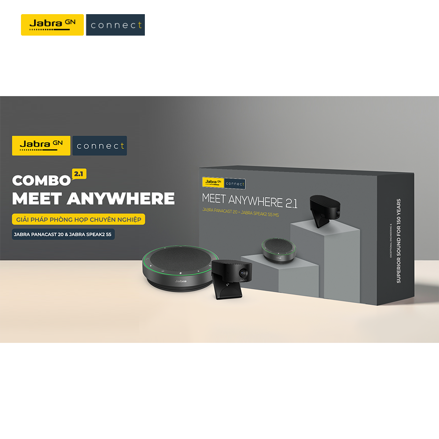 Kết hợp cùng camera là loa hội nghị Jabra Speak2 55, được nâng cấp với 4 micro beamforming, khả năng lọc ồn và khử vọng hiệu quả. Loa có dải đèn LED trực quan hiển thị trạng thái, tích hợp AI xử lý âm thanh thông minh, giúp giọng nói tự nhiên và rõ ràng như đang trò chuyện trực tiếp. Pin mạnh mẽ cho phép sử dụng liên tục lên tới 12 giờ, phù hợp cho cả ngày làm việc.