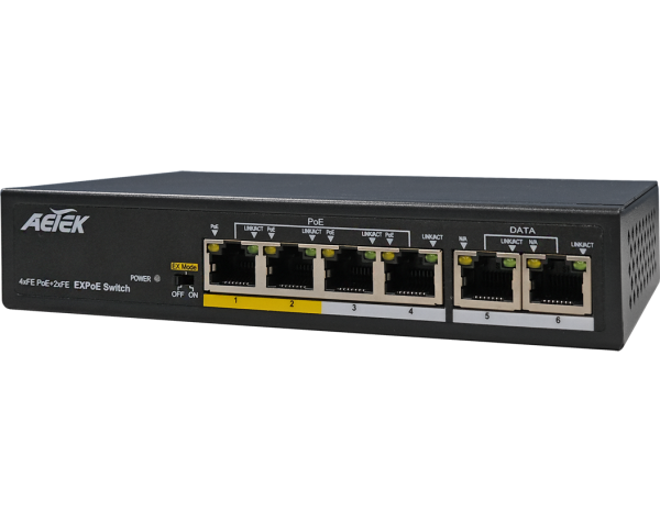 Dòng sản phẩm chuyển mạch EXPoE trong nhà không được quản lý C11 của AETEK được trang bị công tắc DIP cung cấp chế độ hoạt động EX “EXtensive”. Dòng sản phẩm C11 được thiết kế đặc biệt cho ứng dụng Giám sát IP, bên cạnh các chức năng PoE 802.3af/at tiêu chuẩn, chế độ EX cung cấp khoảng cách cực xa về hình ảnh camera và công suất tối đa lên đến 250m thông qua các cổng EX chuyên dụng cho camera IP PoE tầm xa. Trong khi đó, dòng sản phẩm C11 còn có thêm 20% phạm vi dung sai điện áp đầu vào, bảo vệ chống sét lan truyền nguồn AC và bảo vệ chống sét lan truyền PoE để ngăn ngừa thiệt hại do nguồn AC không ổn định bên ngoài, sét lan truyền và điện áp tăng đột biến. Những tính năng độc đáo này giúp giảm chi phí thay thế bộ phận lỗi bị hỏng.