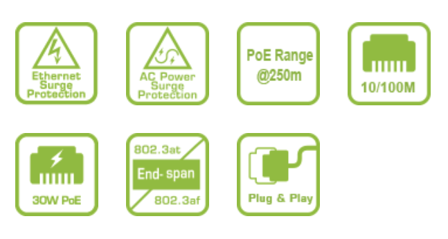 thiết kế đặc biệt cho ứng dụng Giám sát IP, bên cạnh các chức năng PoE 802.3af/at tiêu chuẩn, chế độ EX cung cấp khoảng cách cực xa về hình ảnh camera và công suất tối đa lên đến 250m thông qua các cổng EX chuyên dụng cho camera IP PoE tầm xa. Trong khi đó, dòng sản phẩm C11 còn có thêm 20% phạm vi dung sai điện áp đầu vào, bảo vệ chống sét lan truyền nguồn AC và bảo vệ chống sét lan truyền PoE để ngăn ngừa thiệt hại do nguồn AC không ổn định bên ngoài, sét lan truyền và điện áp tăng đột biến. Những tính năng độc đáo này giúp giảm chi phí thay thế bộ phận lỗi bị hỏng.