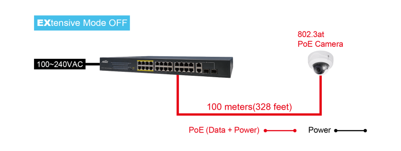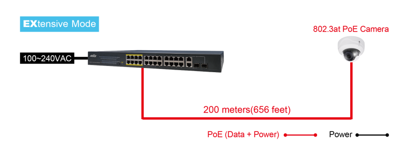 Dòng sản phẩm chuyển mạch EXPoE trong nhà không được quản lý C11 của AETEK được trang bị công tắc DIP cung cấp chế độ hoạt động EX “EXtensive”. Dòng sản phẩm C11 được thiết kế đặc biệt cho ứng dụng Giám sát IP, bên cạnh các chức năng PoE 802.3af/at tiêu chuẩn, chế độ EX cung cấp khoảng cách cực xa về hình ảnh camera và công suất tối đa lên đến 250m thông qua các cổng EX chuyên dụng cho camera IP PoE tầm xa. Trong khi đó, dòng sản phẩm C11 còn có thêm 20% phạm vi dung sai điện áp đầu vào, bảo vệ chống sét lan truyền nguồn AC và bảo vệ chống sét lan truyền PoE để ngăn ngừa thiệt hại do nguồn AC không ổn định bên ngoài, sét lan truyền và điện áp tăng đột biến. Những tính năng độc đáo này giúp giảm chi phí thay thế bộ phận lỗi bị hỏng.