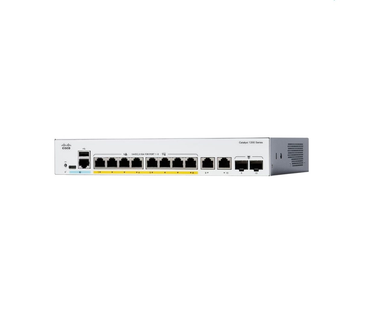 Cisco C1200-8FP-2G là thiết bị chuyển mạch thuộc dòng Switch Cisco, cung cấp 8 cổng 10/100/1000 hỗ trợ PoE+ với tổng công suất 120W cùng 2 cổng combo 1G copper/SFP uplink. Thiết bị này thuộc dòng Cisco Catalyst 1200 và ra đời nhằm thay thế cho sản phẩm CBS250-8FP-E-2G-EU đã hết hàng, phù hợp để triển khai tại các doanh nghiệp vừa và nhỏ với hiệu suất cao và chi phí phải chăng.