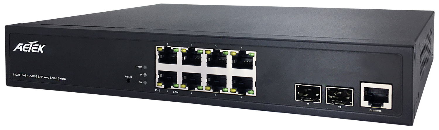 Dòng sản phẩm C51 của AETEK cung cấp đa dạng các thiết bị chuyển mạch PoE thông minh L2, được trang bị khe cắm Gigabit PoE đa cổng (10M/100M/1G) và khe cắm bộ thu phát SFP (1G) cho kết nối linh hoạt. Dòng sản phẩm C51 có ba model phụ bao gồm 8 cổng, 16 cổng và 24 cổng, tuân thủ tiêu chuẩn IEEE 802.3af/at với công suất PoE đủ dùng cho mọi ứng dụng.