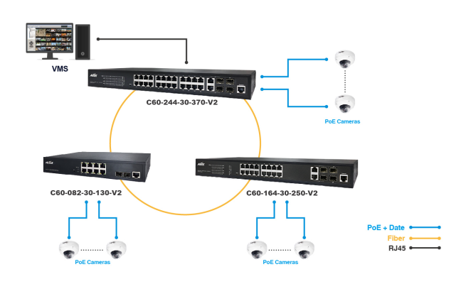 Bên cạnh Switch PoE được quản lý NTS L2, dòng sản phẩm C60 còn là bộ điều khiển camera IP được thiết kế đặc biệt để dễ dàng quản lý và tổng quan các camera IP tuân thủ ONVIF, ngay cả khi người cài đặt không quen với phần mềm nâng cao của Switch PoE được quản lý NTS L2. Giao diện người dùng đồ họa (GUI) trên web tập trung giúp dễ dàng tìm camera và tự động tạo cấu trúc liên kết khi camera IP ONVIF được kết nối với dòng sản phẩm C60. Trong khi đó, người cài đặt có thể dễ dàng nắm bắt thông tin toàn diện về từng camera bao gồm danh sách camera, địa chỉ IP/MAC, cấu trúc liên kết, mức tiêu thụ điện năng và giám sát lưu lượng thông qua trình duyệt web.