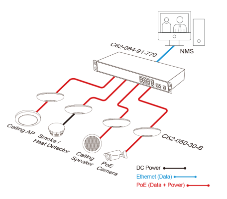 Bên cạnh Switch PoE được quản lý NTS L2 PRO, dòng sản phẩm C62 còn là bộ điều khiển camera IP được thiết kế đặc biệt để dễ dàng quản lý và tổng quan các camera IP tuân thủ ONVIF, ngay cả khi người cài đặt không quen với phần mềm nâng cao của Switch PoE được quản lý NTS L2 PRO. Giao diện người dùng đồ họa (GUI) trên web tập trung giúp dễ dàng tìm camera và tự động tạo cấu trúc liên kết khi camera IP ONVIF được kết nối với dòng sản phẩm C62. Trong khi đó, người cài đặt có thể dễ dàng nắm bắt thông tin toàn diện về từng camera bao gồm danh sách camera, địa chỉ IP/MAC, cấu trúc liên kết, mức tiêu thụ điện năng và giám sát lưu lượng thông qua trình duyệt web.
