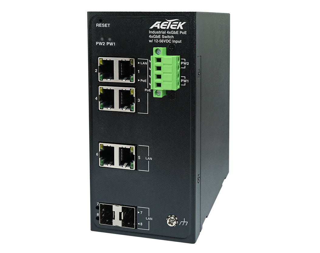 Industrial 4-Port 30W PoE + 2-Port SFP + 2-Port RJ45 Gigabit Switch w/ 12~56VDC Input