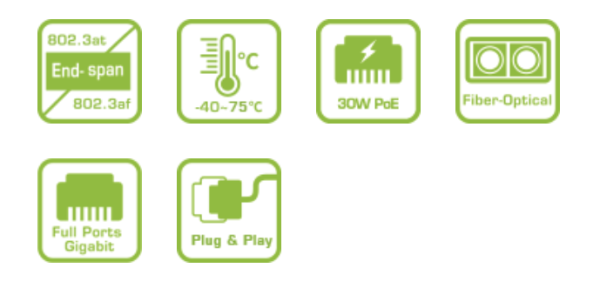 Dòng D40 của Bộ chuyển mạch PoE công nghiệp không quản lý được cấp độ cứng (Harden-Graded) được thiết kế với IP30 và nhiệt độ hoạt động từ -40°C đến 75°C trong điều kiện thời tiết khắc nghiệt. Bên cạnh việc hỗ trợ kết nối PoE af/at PD, D40-044-90-DC / D40-044-91-DC còn được thiết kế đặc biệt cho các PD PoE bt (>25,5W) mới nhất như camera IR PTZ, camera đa cảm biến và các ứng dụng PoE tầm xa.