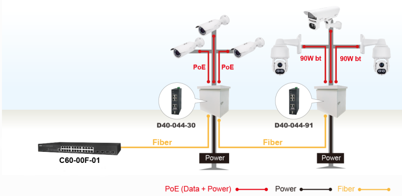 Với tổng công suất PoE lên đến 120 watt, D40-044-30 đáp ứng nhu cầu cấp nguồn PoE cho bất kỳ ứng dụng giám sát IP HD nào. Thiết bị cho phép kết nối các thiết bị cấp nguồn PoE (PD) với mạng, bao gồm camera IP PoE, điểm truy cập không dây (AP) PoE và các ứng dụng công nghiệp khác. Dòng