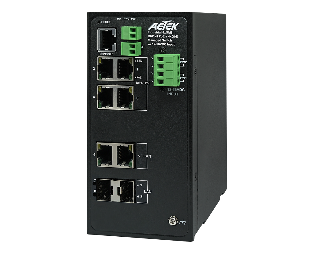 Industrial L2 Gigabit 90W bt PoE Switch w/ 12~56VDC Input