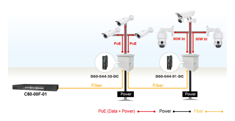 Dòng D60 của Industrial Pro L2 Plus Managed PoE Switches được thiết kế với khả năng chống xung sét cổng Ethernet 6KV và tiêu chuẩn tăng cường để hoạt động trong khoảng từ -40°C đến 75°C trong điều kiện thời tiết khắc nghiệt. Chúng cho phép kết nối ngoài trời của PoE PD với mạng như camera IP ngoài trời, AP không dây và các ứng dụng công nghiệp ngoài trời khác.