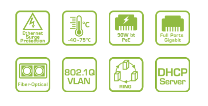 Bên cạnh các chức năng chung của L2 plus & switch L3 cơ bản như QoS, bảo mật, spanning tree, đo chiều dài cáp và SNMP v1/v2c/v3, giao diện người dùng đồ họa web chuyên dụng của giám sát IP giúp dễ dàng cấu hình và quản lý thiết bị IP. Nó tự động tạo bản đồ cấu trúc mạng, chẩn đoán cáp và quản lý PoE.