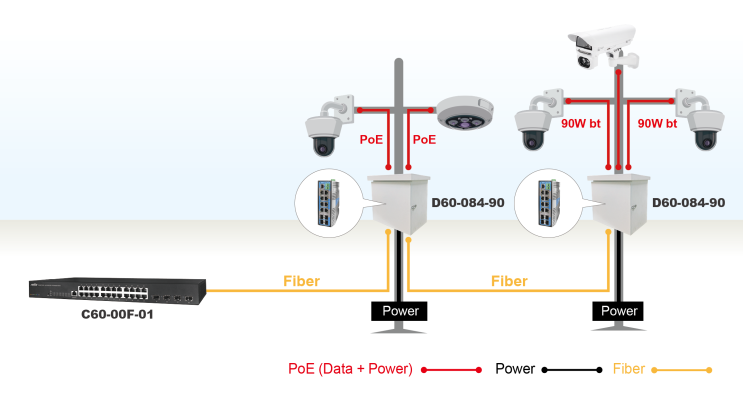 Kết hợp khả năng bảo vệ cấp công nghiệp, công suất PoE cao và quản lý mạng thông minh, D60-084-90 là giải pháp lý tưởng để xây dựng mạng PoE hiệu quả và bền bỉ trong môi trường giám sát ngoài trời và công nghiệp khắc nghiệt.