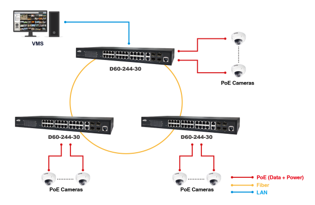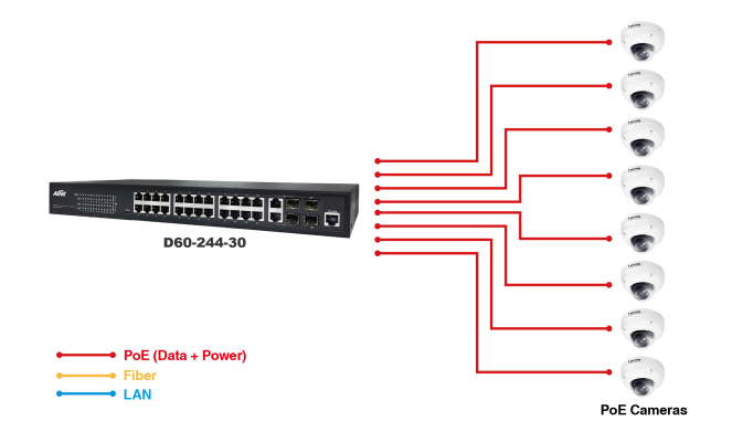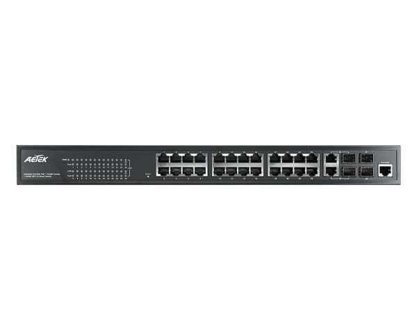 AETEK D60-244-30 cung cấp đa dạng các thiết bị chuyển mạch công nghiệp L2 PRO Gigabit PoE, với 24 cổng Gigabit PoE (10M/100M/1G), 2 cổng Gigabit Combo RJ45/SFP và 2 cổng Gigabit SFP cho kết nối linh hoạt. Thiết bị chuyển mạch này tuân thủ tiêu chuẩn IEEE 802.3af/at, với công suất PoE đủ dùng cho mọi ứng dụng.