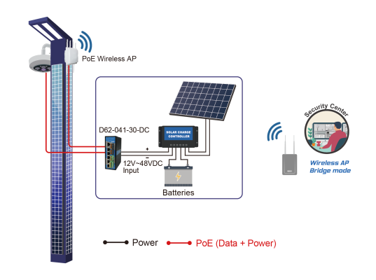 D62-DC hiện có hai mô hình con được phân loại là thiết bị nguồn điện (PSE) để cung cấp ngân sách PoE lên tới 30W cho mỗi cổng và các cổng đầu ra DC 12v / 24v bổ sung để cung cấp nguồn điện cho nhiều thiết bị mạng hơn. Với khả năng Gigabit PoE đa cổng (10M/100M/1G), D62-DC có thể truyền dữ liệu và nguồn điện hiệu quả đến các PD PoE qua một cáp mạng duy nhất. Ngoài ra, D62-DC có các khe cắm bộ thu phát SFP, cho phép cấu hình liên kết ngược linh hoạt.
