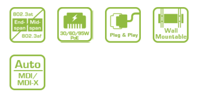 - Supported PSEs providing 95W/60W/30W PoE