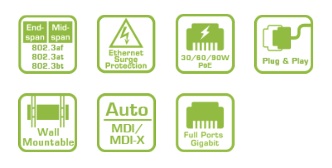 Indoor 30/60/90W bt PoE Gigabit Extender