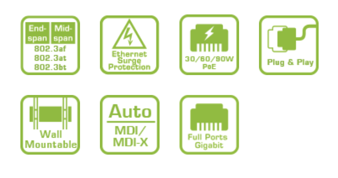 - Backward compatible with IEEE 802.3at PoE+ end-span or mid-span PD