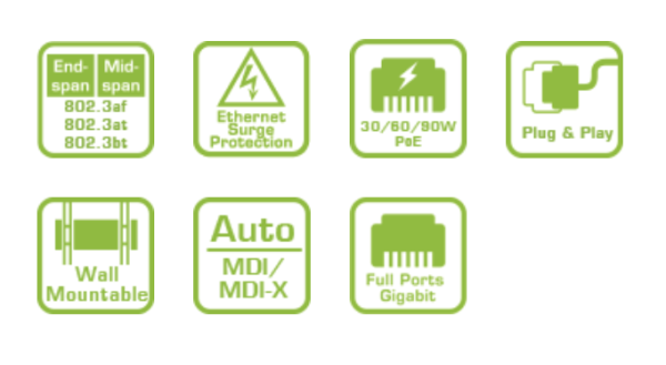 Không cần bộ chuyển đổi nguồn, bộ mở rộng PoE E59-202 được cấp nguồn bằng PoE injector, hub trung gian hoặc switch PoE qua một cáp mạng, giúp mở rộng phạm vi kết nối Ethernet tùy thuộc vào mức tiêu thụ điện năng của PD và ngân sách điện năng của PSE trên mỗi cổng.