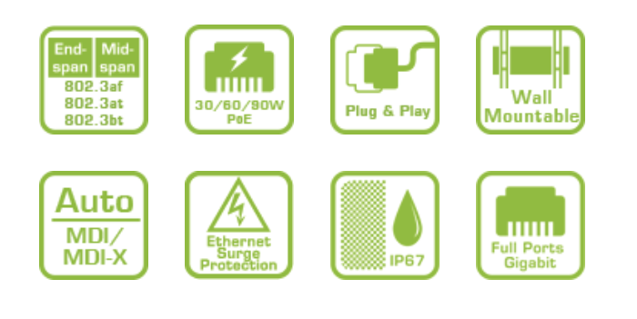 Outdoor 30/60/90W bt PoE Gigabit Extender