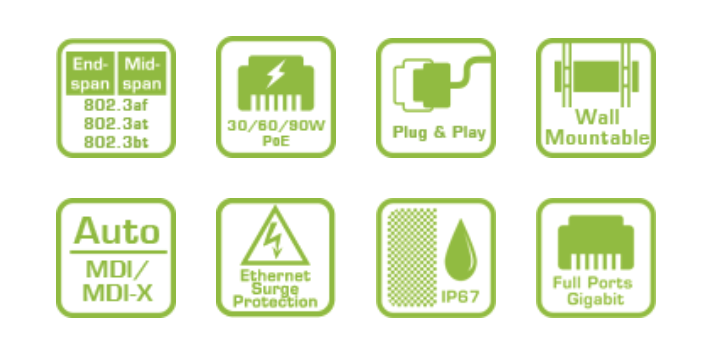 Không cần bộ chuyển đổi nguồn, bộ mở rộng PoE E69-202 được cấp nguồn bởi PoE Injector, Hub Middle-Span hoặc switch PoE qua một cáp mạng, giúp mở rộng phạm vi kết nối Ethernet tùy thuộc vào mức tiêu thụ điện năng của PD và ngân sách điện năng của PSE trên mỗi cổng.