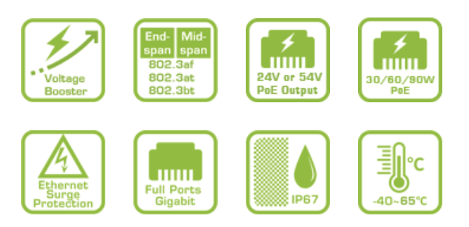E69-602 được tích hợp bộ tăng áp, đảm bảo điện áp đầu ra ổn định cho các thiết bị PoE công suất cao của bạn.