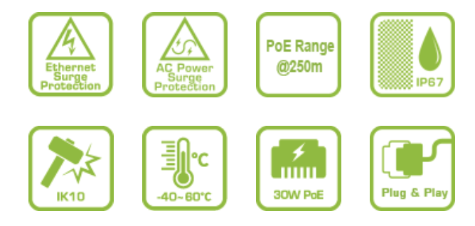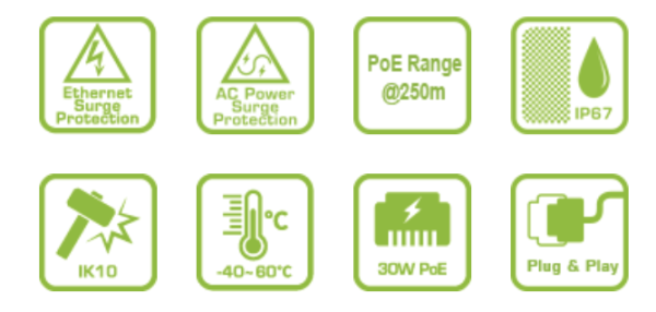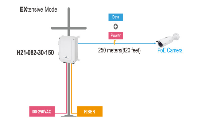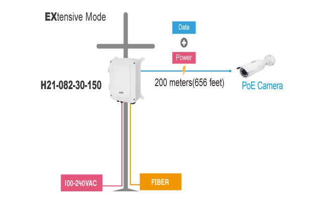Dòng chuyển mạch EXPoE không được quản lý ngoài trời H21, một thiết bị IP67 / IK10, hoạt động trong môi trường khắc nghiệt từ -40°C ~ 60°C cho ứng dụng Giám sát IP ngoài trời. Bên cạnh các chức năng PoE 802.3af/at tiêu chuẩn, chế độ EXtensive cung cấp khoảng cách cực xa của hình ảnh camera và công suất tối đa lên đến 250m thông qua các cổng EXPoE chuyên dụng cho camera IP PoE tầm xa. Trong khi đó, dòng H21 còn có thêm 20% phạm vi dung sai điện áp đầu vào, bảo vệ chống sét lan truyền trên nguồn AC và bảo vệ chống sét lan truyền PoE để ngăn ngừa thiệt hại do nguồn AC không ổn định bên ngoài, sét lan truyền và điện áp tăng đột biến.