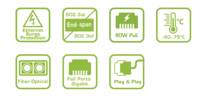 Dòng H30 của Bộ chuyển mạch PoE công nghiệp không được quản lý hỗ trợ chống sét lan truyền 12KV cho mỗi cổng Ethernet và cấu trúc được gia cường để đảm bảo hoạt động trong điều kiện thời tiết khắc nghiệt từ -40°C đến 75°C.