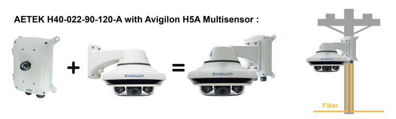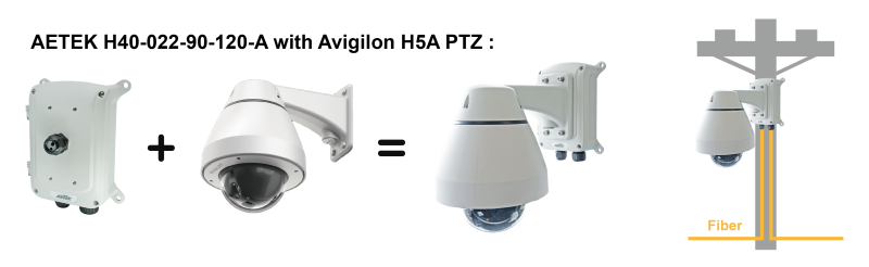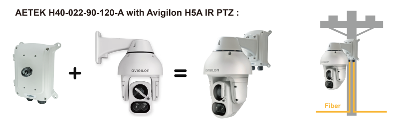 AETEK H40-022-90-120-A không chỉ cung cấp nguồn PoE 90W PoH và truyền dữ liệu cho camera Avigilon PTZ và camera đa cảm biến mà còn cho phép bạn gắn giá treo tường Pendant vào chúng trực tiếp.