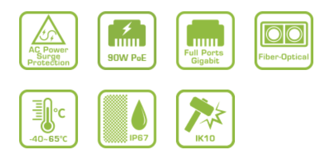 Được trang bị 2 cổng Gigabit PoE và 2 cổng Gigabit SFP, H40-022-91-DC-A là giải pháp tất cả trong một, tạo nên mạng lưới liên kết chuỗi cho hệ thống giám sát IP PoE tầm xa. Vỏ nhôm đúc chắc chắn, đạt chuẩn IP67, IK10 và chịu được môi trường khắc nghiệt từ -40°C ~ 65°C (-40°F ~ 149°F).