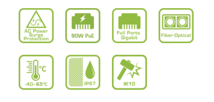 Được trang bị 2 cổng Gigabit PoE và 2 cổng Gigabit SFP, H40-022-91-DC là giải pháp tất cả trong một, tạo nên mạng lưới kết nối chuỗi cho hệ thống giám sát IP PoE tầm xa. Vỏ nhôm đúc chắc chắn, chịu được môi trường khắc nghiệt, đạt chuẩn IP67, IK10 và -40°C ~ 65°C (-40°F ~ 149°F).