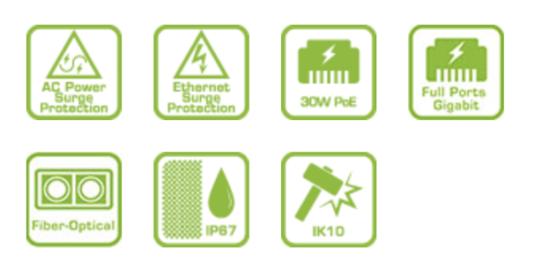 H40-042-30-075 là Switch PoE công nghiệp Gigabit được thiết kế với chuẩn IP67 & IK10, bảo vệ quá áp cổng Ethernet PoE 6KV, bảo vệ quá áp nguồn AC 10KV và nhiệt độ hoạt động từ -40°C đến 65°C trong điều kiện thời tiết khắc nghiệt. Thiết bị cho phép kết nối IP67/IK10 các thiết bị PoE PD với mạng lưới như camera IP ngoài trời, AP không dây và các ứng dụng công nghiệp khác.