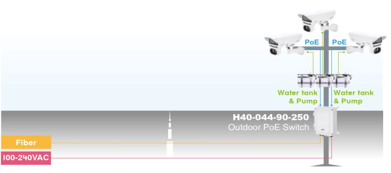 Với tổng công suất PoE lên đến 250 watt, H40-044-90-250 đáp ứng nhu cầu về nguồn PoE cho bất kỳ ứng dụng giám sát IP HD nào. Thiết bị cho phép kết nối các thiết bị nguồn PoE (PD) với mạng ngoài trời, bao gồm camera IP PoE ngoài trời, điểm truy cập không dây (AP) PoE và các ứng dụng công nghiệp khác.
