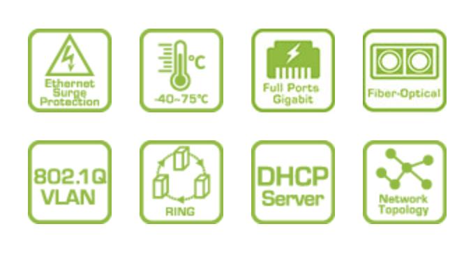 Bên cạnh các chức năng chung của switch L2 plus và L3 cơ bản như định tuyến tĩnh, QoS, bảo mật, spanning tree, đo chiều dài cáp và SNMP v1/v2c/v3, giao diện người dùng đồ họa web chuyên dụng của hệ thống giám sát IP giúp dễ dàng cấu hình và quản lý thiết bị IP. Giao diện này tự động tạo bản đồ cấu trúc mạng, cho phép tạo nhóm VLAN, chẩn đoán cáp và quản lý PoE.