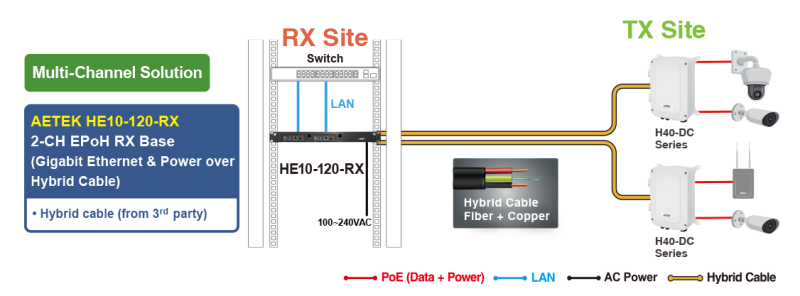 HE10-120-RX là bộ thu EPoH (Giải pháp PoE tầm xa qua cáp đồng-sợi lai) (RX) được trang bị 2 cổng cáp lai và 2 cổng LAN. Giải pháp PoE tầm xa tiên tiến này cung cấp dữ liệu và nguồn điện cho bộ chuyển mạch EPoH TX và bộ chuyển mạch PoE 4xaf lên đến 2.400m / 7.874ft.