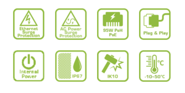 AETEK cung cấp đầy đủ các loại bộ cấp nguồn PoE PoH 95W để cấp nguồn cho nhiều loại thiết bị giám sát (PD) và truyền dữ liệu từ xa qua cáp mạng. Bộ cấp nguồn PoE PoH 95W trong nhà có sẵn cho các PD cụ thể yêu cầu mức tiêu thụ điện năng cao, chẳng hạn như camera IP speed dome, camera PoE hoặc vỏ camera PoE được trang bị quạt gió, bộ gia nhiệt, đèn chiếu sáng và gạt nước.