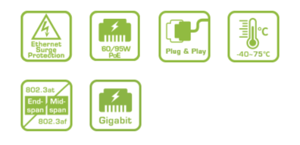 Bộ cấp nguồn PoE công nghiệp Gigabit I69-100 được thiết kế cho các thiết bị giám sát chuyên dụng yêu cầu mức tiêu thụ điện năng cao, chẳng hạn như camera IP speed dome, camera PoE hoặc vỏ camera PoE được trang bị quạt gió, bộ gia nhiệt, đèn chiếu sáng và gạt nước.