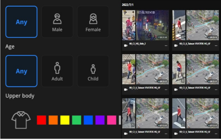 Trang bị công nghệ AI hiện đại, ND9542P tích hợp tính năng Deep Search với hai chức năng chính: Attribute Search và Scene Search. Attribute Search ho phép người dùng tìm kiếm đối tượng dựa trên các tiêu chí như giới tính, độ tuổi, màu trang phục hoặc loại phương tiện. Trong khi đó, Scene Search hỗ trợ phát hiện các hành vi như vượt rào, xâm nhập hay lảng vảng, giúp xác định nhanh các sự kiện cần chú ý.
