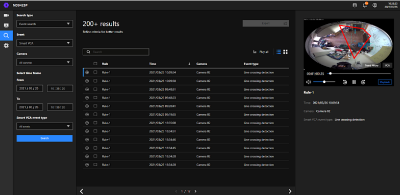 Thiết bị tương thích với công nghệ phân tích video thông minh Smart VCA của VIVOTEK, cho phép tìm kiếm và phát lại các sự kiện dựa trên nhiều loại cảnh báo khác nhau. Người dùng dễ dàng xuất các đoạn video clip để phục vụ việc kiểm tra hoặc làm bằng chứng.