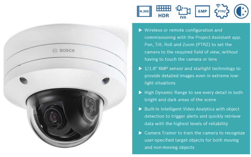 Camera Bosch NDE-8503-RT thuộc dòng FLEXIDOME IP starlight 8000i là một giải pháp giám sát hàng đầu, được thiết kế với sự chú trọng đặc biệt đến tính hiệu suất và tính năng tiên tiến trong lĩnh vực an ninh và giám sát. Được trang bị các công nghệ hàng đầu, camera này thể hiện sự ưu việt qua khả năng linh hoạt vận hành không dây hoặc từ xa, hỗ trợ PTRZ, cảm biến 6MP sử dụng công nghệ Starlight và HDR, cùng với khả năng tích hợp phân tích video thông minh.