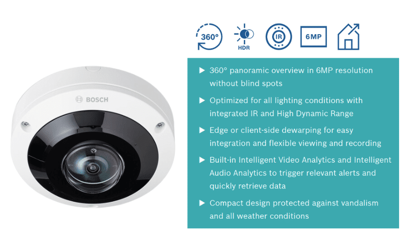 Camera Bosch NDS-5703-F360LE là một thành viên xuất sắc trong dòng camera FLEXIDOME panoramic 5100i IR, mang đến giải pháp giám sát hàng đầu với khả năng quan sát toàn cảnh 360 độ và nhiều tính năng ưu việt khác. Với chất lượng hình ảnh cao và khả năng hoạt động trong điều kiện khắc nghiệt, đây là một giải pháp tuyệt vời cho việc giám sát an ninh trong nhiều môi trường khác nhau như cửa hàng, kho lớn, nhà xưởng và các không gian khác.