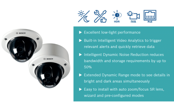 Camera Bosch NIN-73023-A10A có thể hoạt động trong nhiệt độ từ -30°C đến 50°C (-22°F đến 122°F), giúp nó phù hợp với mọi điều kiện thời tiết và môi trường làm việc.