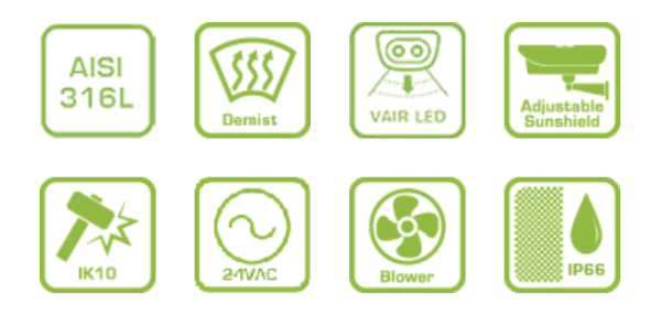 Vỏ camera S2000-I của AETEK được chế tạo bằng thép không gỉ AISI 316L, được thiết kế để bảo vệ camera IP & analog box/camera dạng gạch trong các môi trường khắc nghiệt và ăn mòn cao như ngoài khơi, hóa chất, hóa dầu và đường hầm. Bên cạnh đó, hệ thống sưởi và quạt gió cửa sổ tích hợp giúp ngăn ngừa băng và sương mù bám trên cửa sổ. S2000-I đạt tiêu chuẩn IP68 và IK10. Model này sử dụng nguồn điện đầu vào AC24V và cung cấp nguồn ra DC12V & AC24V bên trong vỏ. Đèn chiếu sáng VAIR 12W tích hợp độc đáo có thể điều chỉnh góc chiếu bằng điều khiển từ xa thông qua lệnh RS485 Pelco-D hoặc công tắc dip thủ công để phù hợp với trường nhìn của camera. Hơn nữa, không gian bên trong rộng rãi, phù hợp với camera được trang bị ống kính góc rộng & ống kính tầm xa.