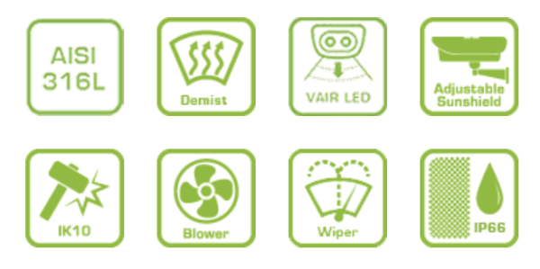 Vỏ camera S2000-IW của AETEK được chế tạo bằng thép không gỉ AISI 316L, được thiết kế để bảo vệ camera IP & analog box/gạch trong các môi trường ăn mòn cao và khắc nghiệt như ngoài khơi, hóa chất, hóa dầu và đường hầm. Bên cạnh bộ sưởi và quạt gió tích hợp để ngăn băng và sương mù trên cửa sổ, S2000-IW còn có cần gạt nước tích hợp và tuân thủ các tiêu chuẩn IP66 và IK10. Vỏ camera chắc chắn này yêu cầu đầu vào nguồn AC24V, cung cấp đầu ra DC12V & AC24V bên trong. S2000-IW là thế hệ vỏ camera mới được trang bị đèn chiếu sáng VAIR 12W tích hợp, có thể điều chỉnh góc chùm tia bằng điều khiển từ xa thông qua lệnh RS485 Pelco-D hoặc công tắc dip thủ công để phù hợp với trường nhìn của camera. Hơn nữa, không gian bên trong rộng rãi phù hợp với camera được trang bị ống kính góc rộng & ống kính tầm xa.