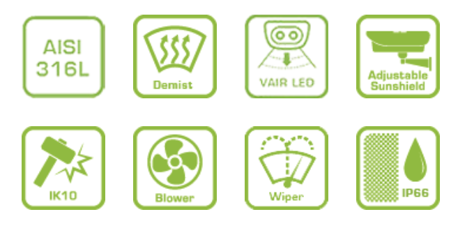 - Long range of built-in 12W VAIR Illuminator up to 140m at 10°