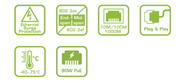 S69-220 là bộ chia PoE công nghiệp đầu ra kép hỗ trợ chuẩn đầu ra 802.3at/bt. Được cấp nguồn bởi bất kỳ Thiết bị Nguồn Điện (PSE) nào hỗ trợ chuẩn 802.3at/bt, S69-220 có thể chia đầu ra thành 2 dạng: điện áp DC và PoE, để đáp ứng đồng thời cả nhu cầu nguồn DC và PoE.